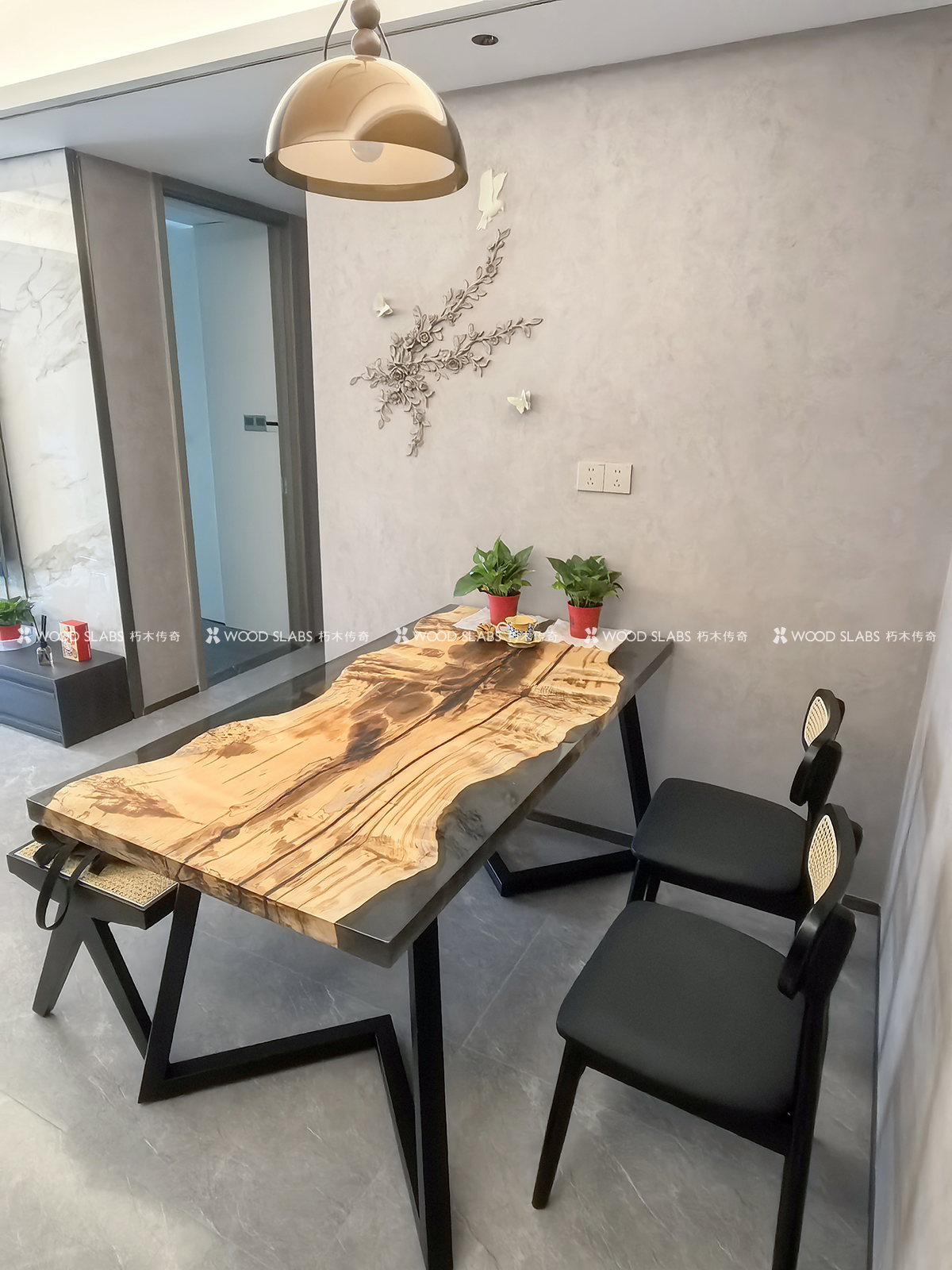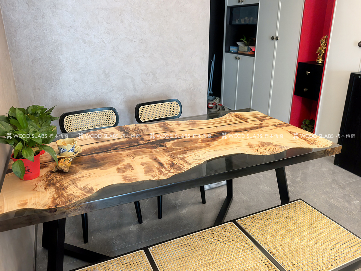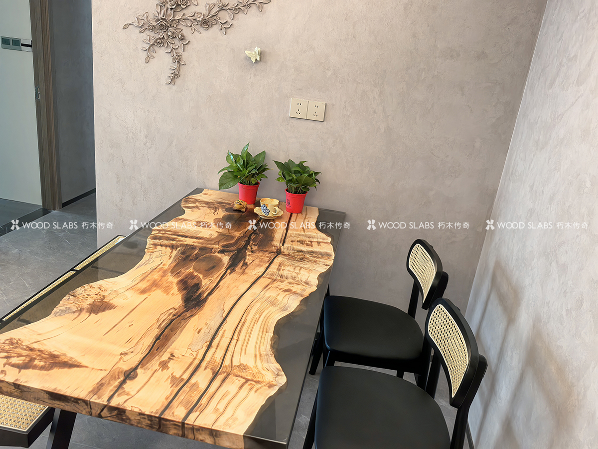将深邃木纹与大板尺度相融,既是仪式感餐桌,也是多功能主场,营造克制而高级的空间气息